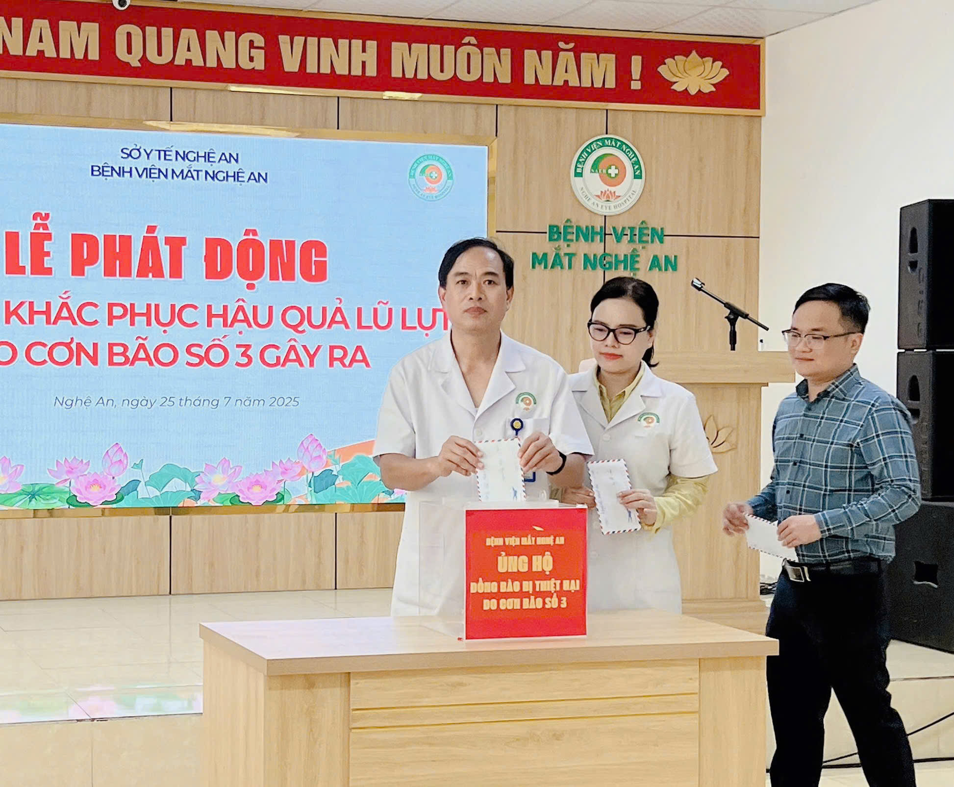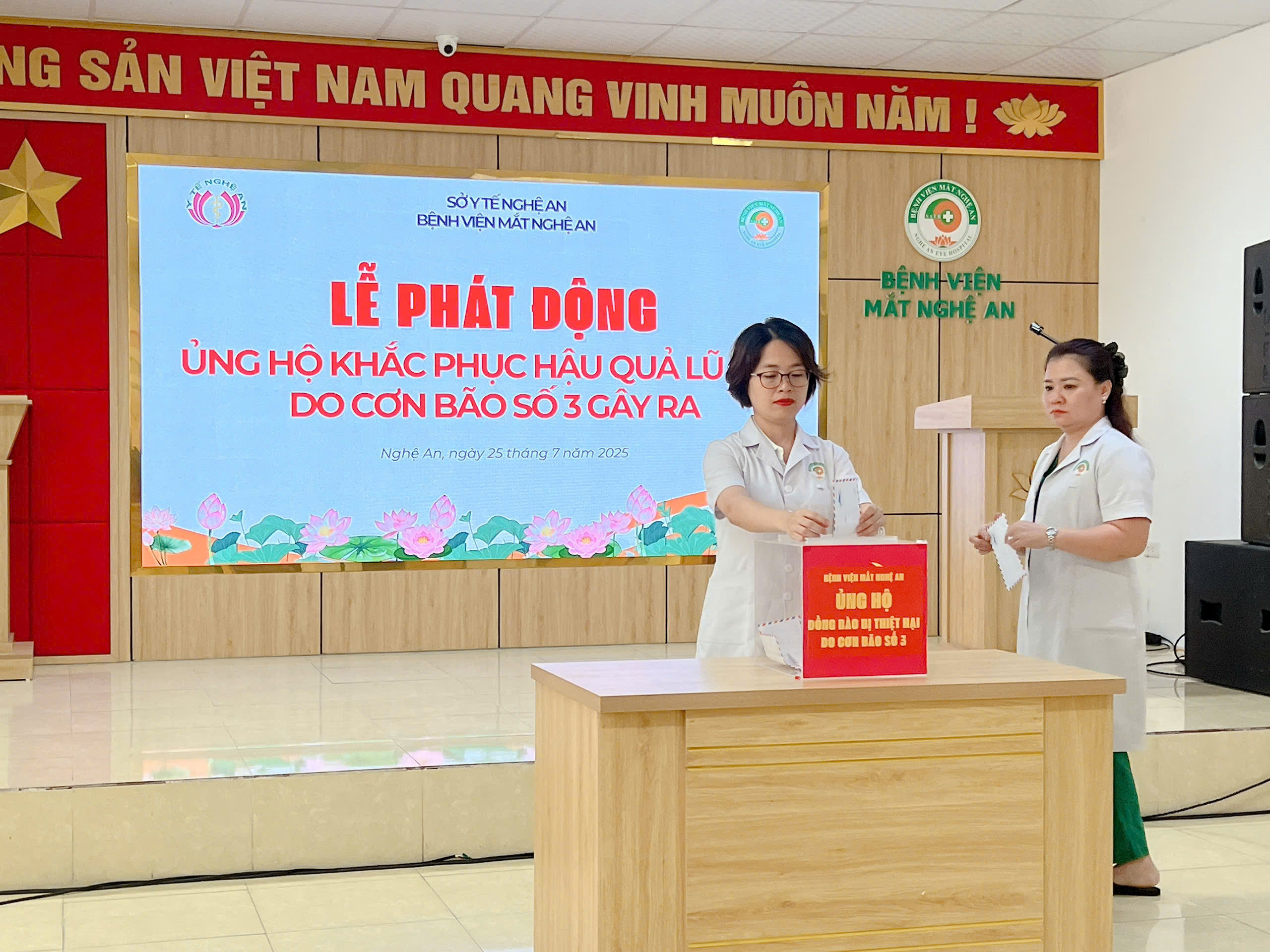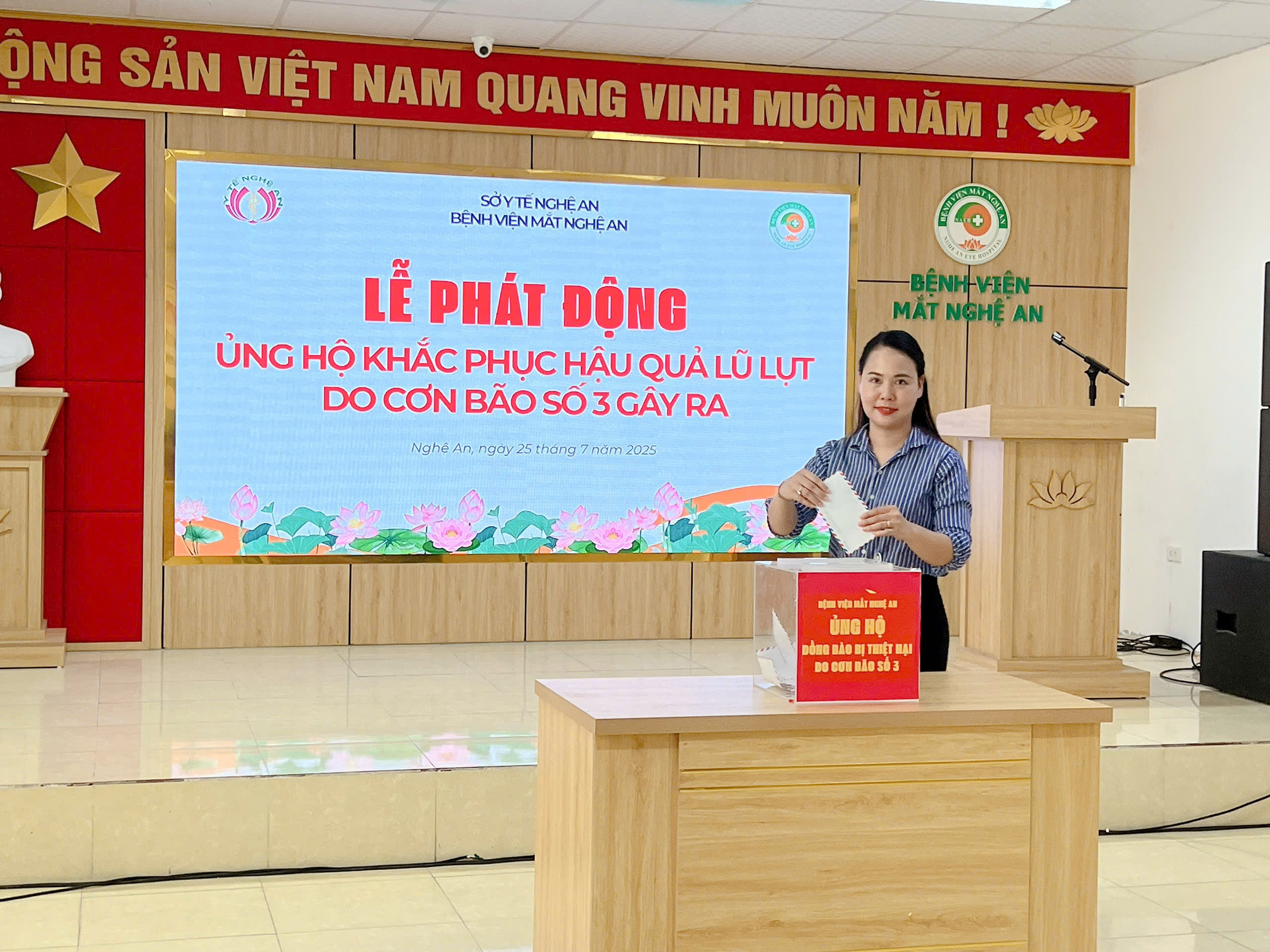 Hưởng ứng lời kêu gọi của Uỷ ban MTTQ Việt Nam Tỉnh Nghệ An ngày 23/7/2025 và Sở Y tế Nghệ An V/v ủng hộ đồng bào bị ảnh hưởng bởi thiên tai do cơn bão số 3 gây ra, phát huy truyền thống “tương thân tương ái“ “lá lành đùm lá rách”.