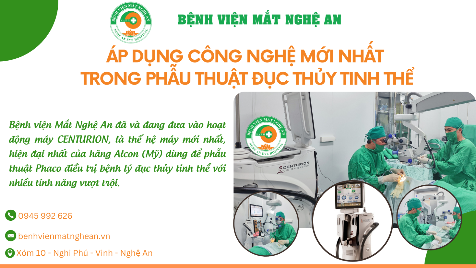 ÁP DỤNG CÔNG NGHỆ MỚI NHẤT TRONG PHẪU THUẬT ĐỤC THỦY TINH THỂ TẠI BỆNH VIỆN MẮT NGHỆ AN