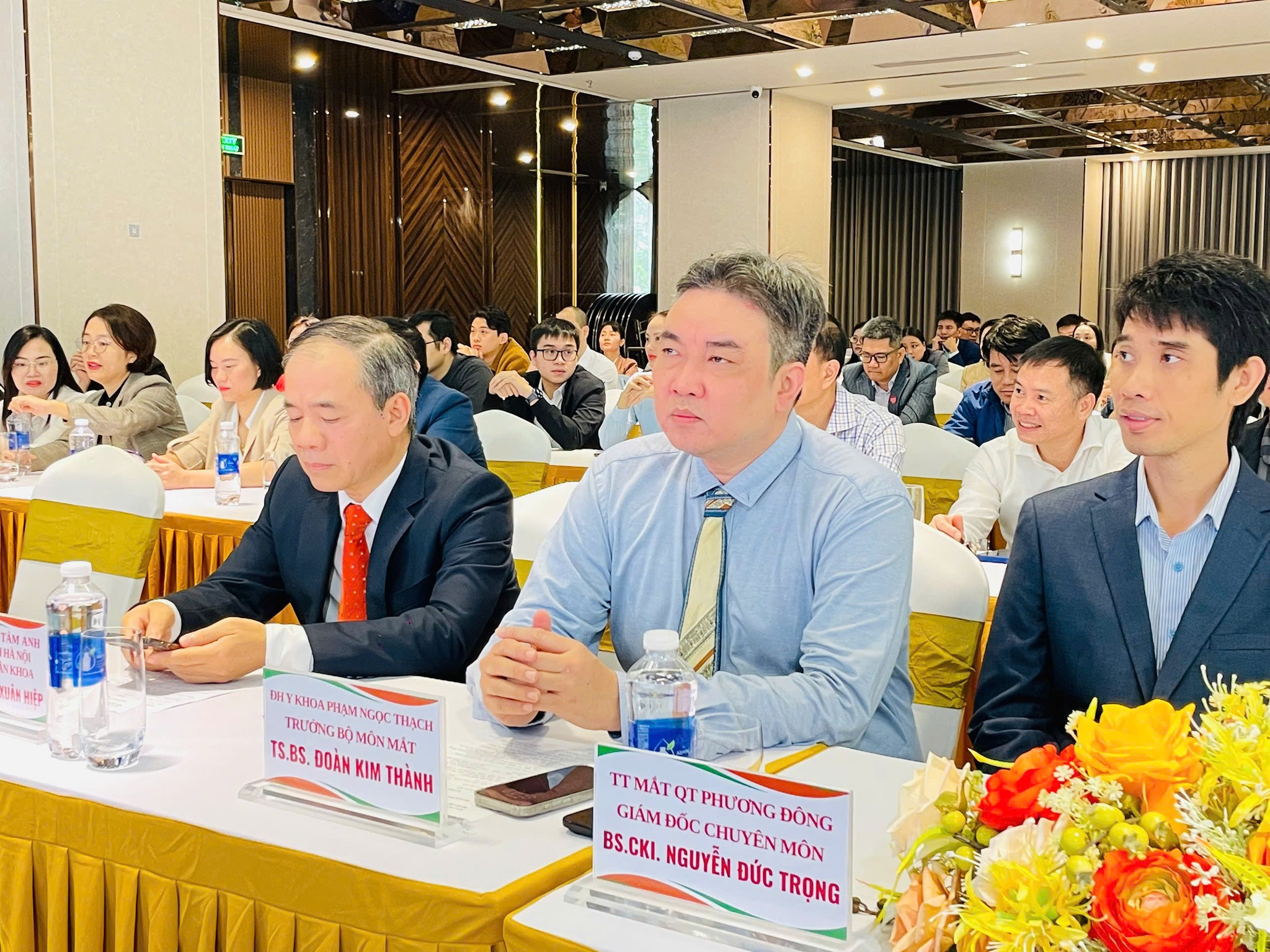 Về tham dự hội nghi có sự tham gia của PGS.TS Nguyễn Xuân Hiệp – Giám đốc Trung tâm Mắt công nghệ cao Tâm Anh, Bệnh viện Đa khoa Tâm Anh Hà Nội, Phó Chủ tịch Hội Nhãn khoa; PGS.TS Lê Minh Tuấn – Đại học Y khoa Phạm Ngọc Thạch; TS.BS Đoàn Kim Thành – Trưởng bộ môn Mắt, Đại học Y khoa Phạm Ngọc Thạch; BS.CKI Nguyễn Đức Trọng – Giám đốc chuyên môn Trung tâm mắt quốc tế Phương Đông; BS.CKII Hoàng Trung Kiên – Giám đốc điều hành cấp cao chuyên môn y khoa, Tập đoàn Y khoa Sài Gòn; cùng các bác sĩ nhãn khoa đang công tác ở các bệnh viện, phòng khám đa khoa, chuyên khoa, trung tâm y tế trên địa bàn tỉnh Hà Tĩnh, Nghệ An và Thanh Hóa.