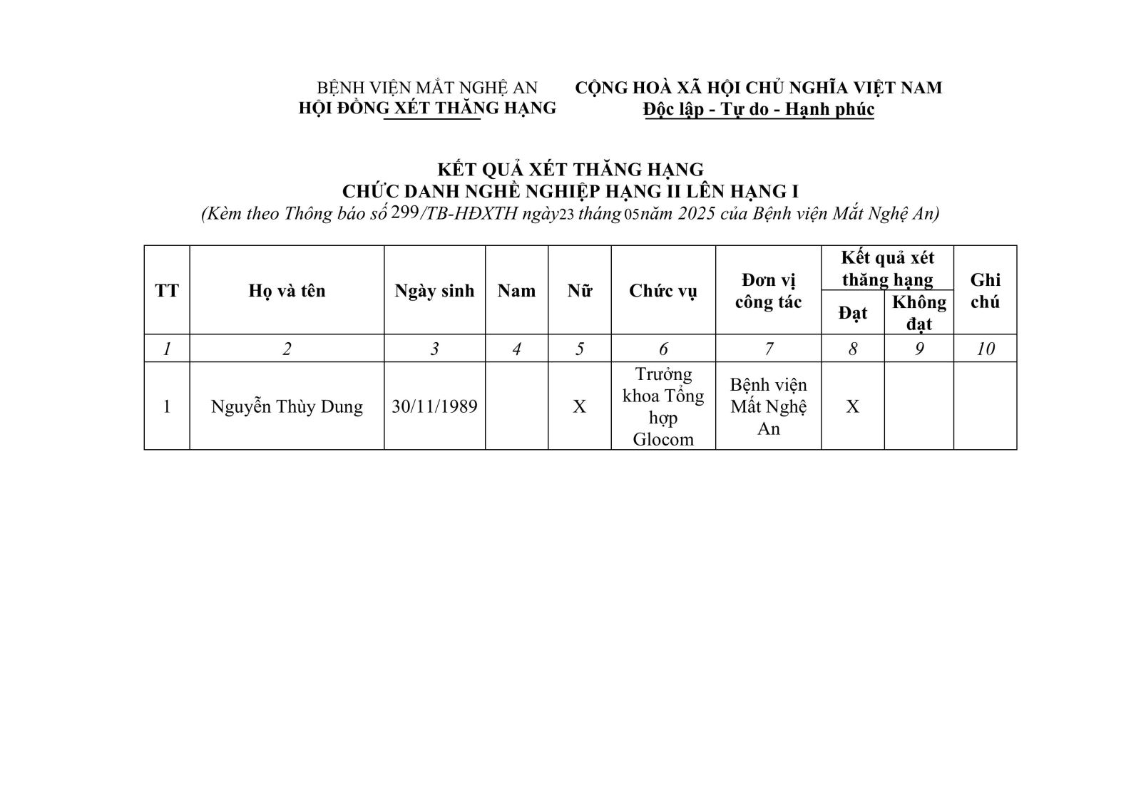 THÔNG BÁO KẾT QUẢ X ÉT THĂNG HẠNG CHỨC DANH NGHỀ NGHIỆP VIÊN CHỨC CHUYÊN NGANH Y TẾ TỪ HẠNG III LÊN HẠNG II