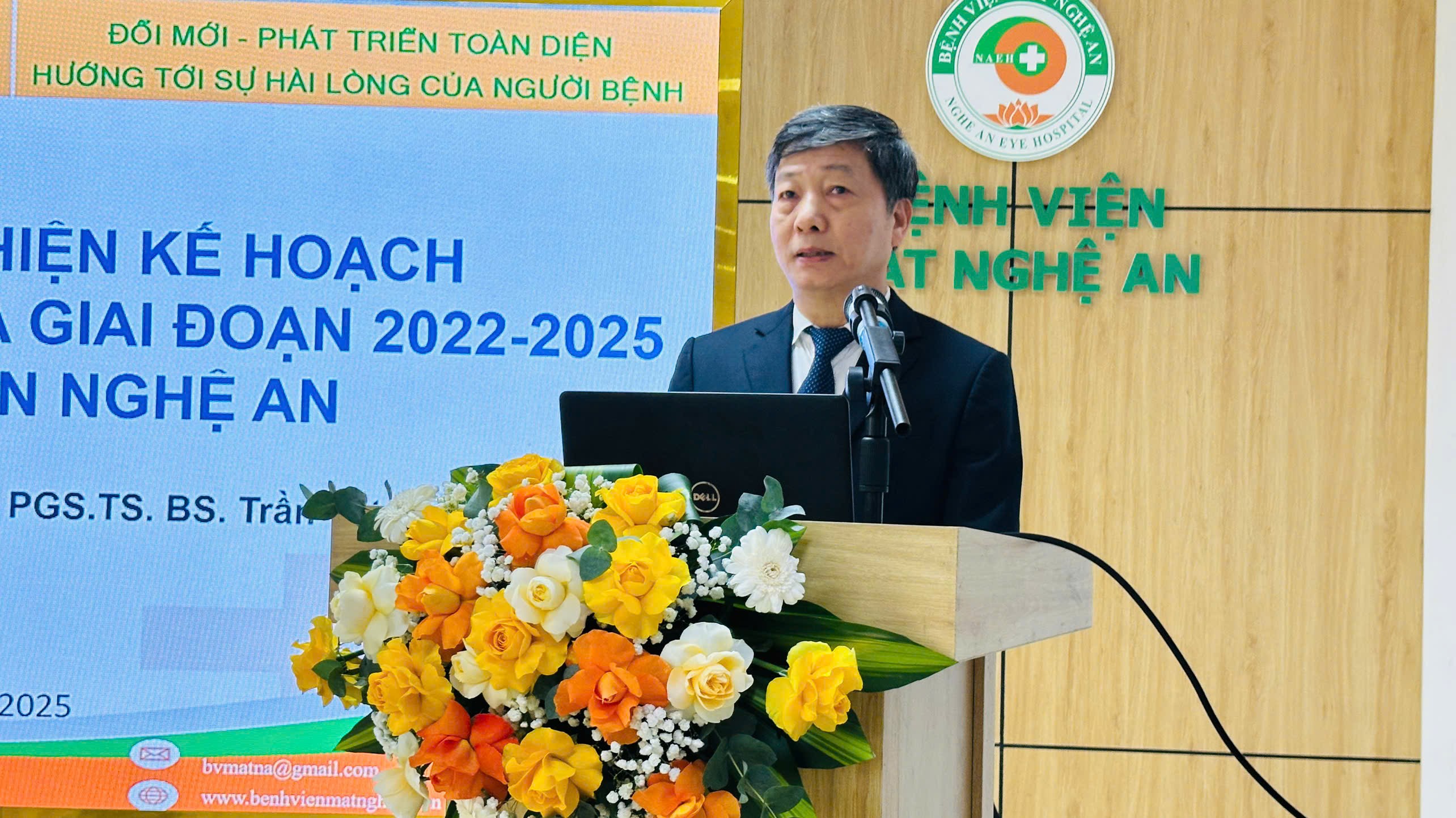 Tại Hội nghị, PGS.TS.BS Trần Tất Thắng – Giám đốc Bệnh viện Mắt Nghệ An đã trình bày Báo cáo tổng kết Chương trình phòng, chống mù lòa giai đoạn 2022 – 2025, làm rõ những kết quả nổi bật trong công tác khám sàng lọc, phát hiện sớm, điều trị và phòng ngừa các bệnh lý gây mù lòa; qua đó góp phần nâng cao chất lượng chăm sóc sức khỏe mắt cho người dân, nhất là người cao tuổi và các đối tượng yếu thế.