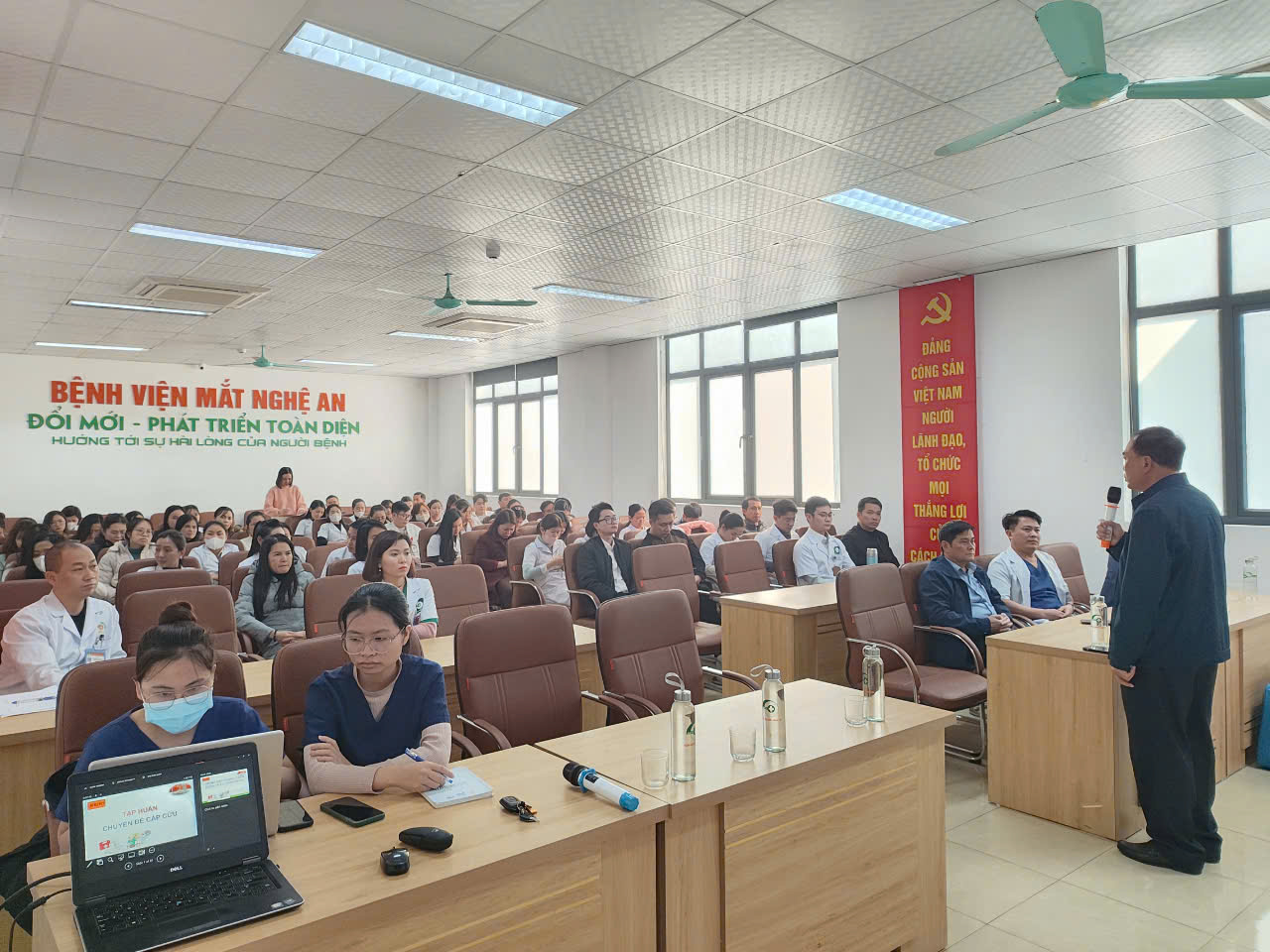 Nhằm không ngừng nâng cao kiến thức và kỹ năng cấp cứu cho đội ngũ viên chức, người lao động, Bệnh viện Mắt Nghệ An đã tổ chức buổi tập huấn chuyên đề cấp cứu dành cho toàn thể nhân viên bệnh viện.