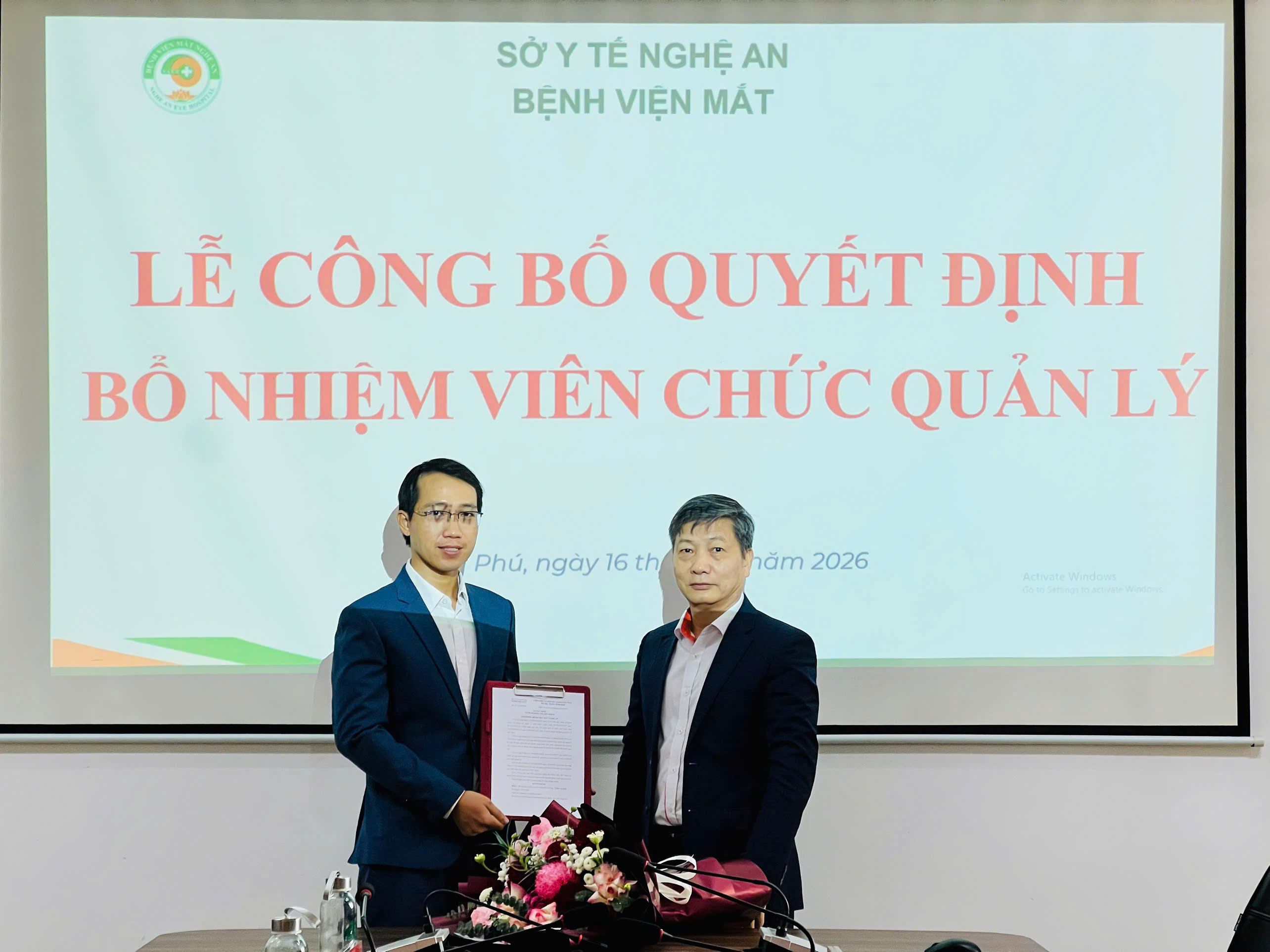 Nhận nhiệm vụ, DS.CKI Trần Văn Đức bày tỏ lời cảm ơn sâu sắc tới Chi ủy, Ban Giám đốc và Phòng Tổ chức – Hành chính đã quan tâm, tin tưởng giao nhiệm vụ; đồng thời khẳng định sẽ không ngừng nỗ lực, học hỏi, rèn luyện, cùng tập thể Khoa Dược – Vật tư hoàn thành tốt mọi nhiệm vụ được giao, góp phần xây dựng Bệnh viện Mắt Nghệ An ngày càng phát triển, chuyên nghiệp và uy tín.
