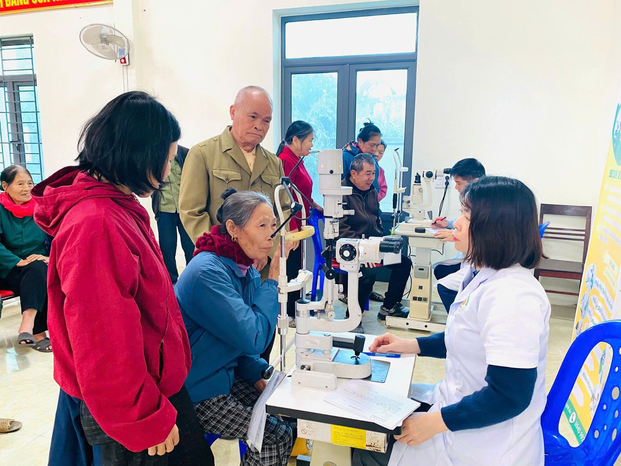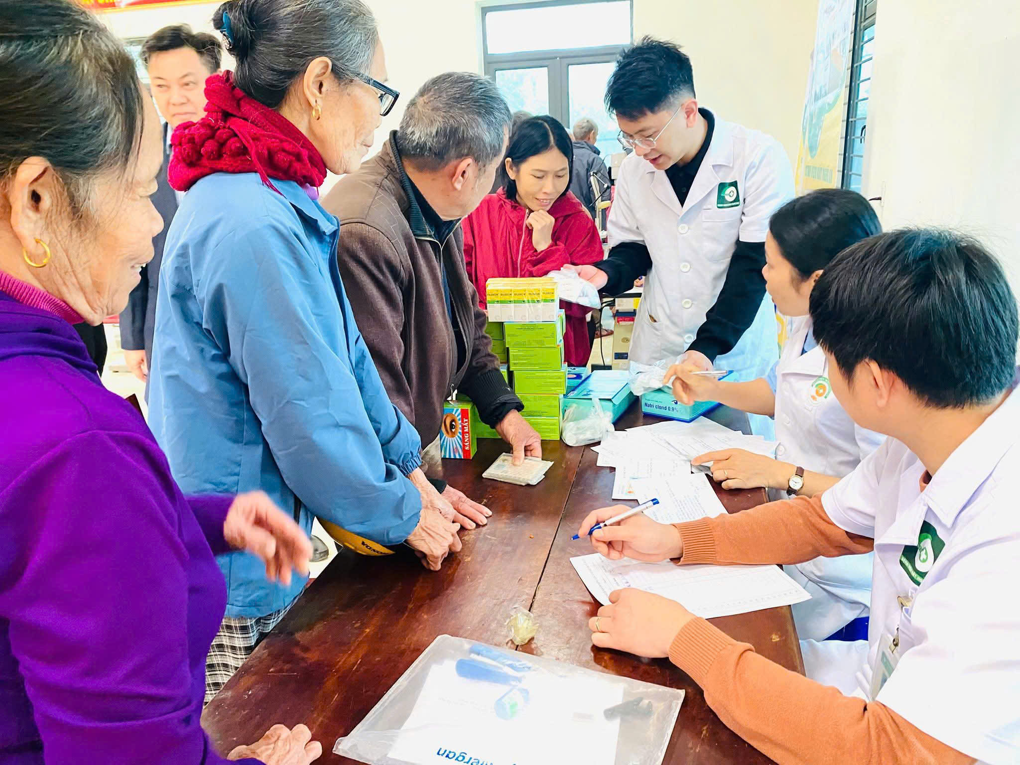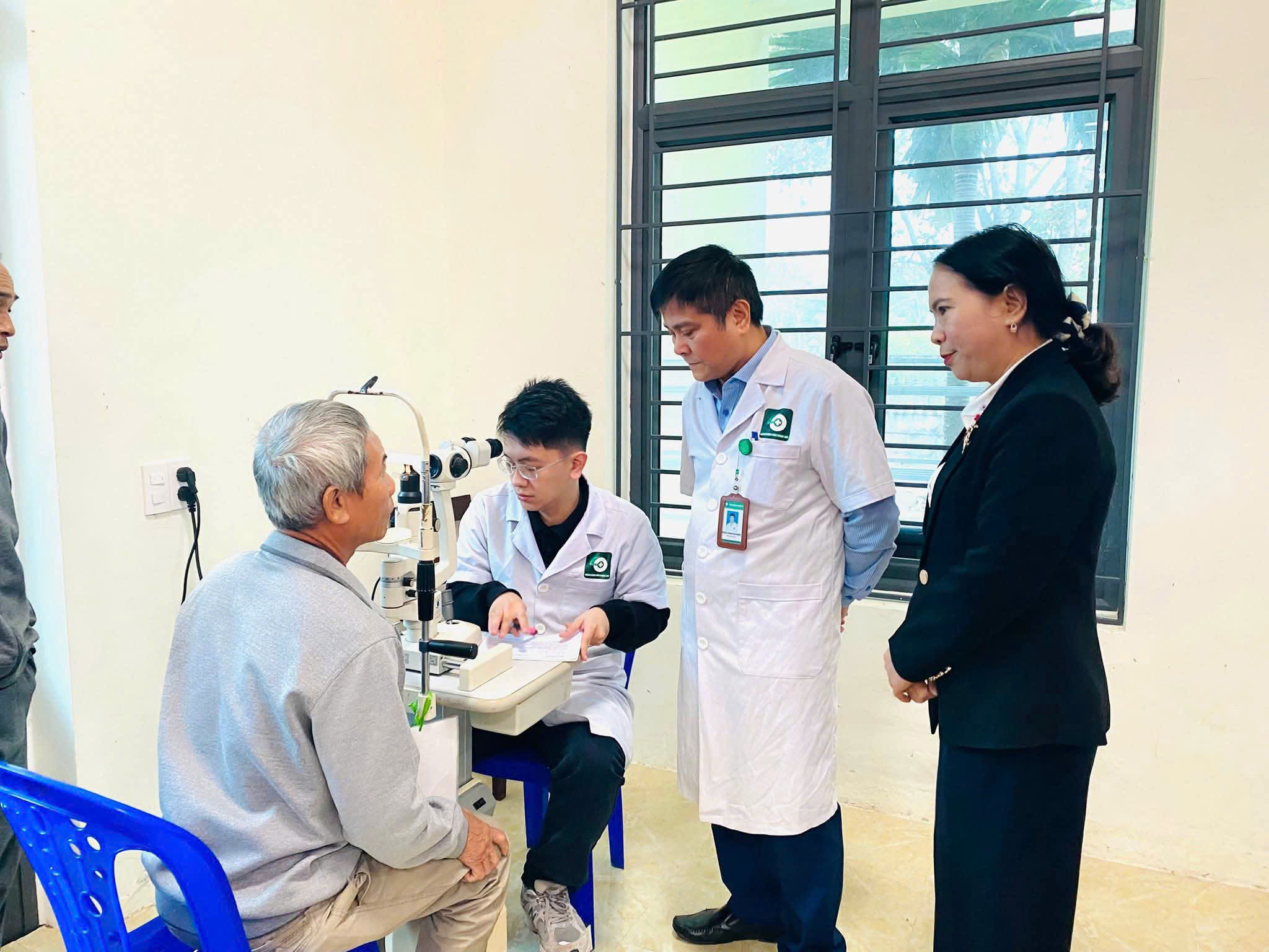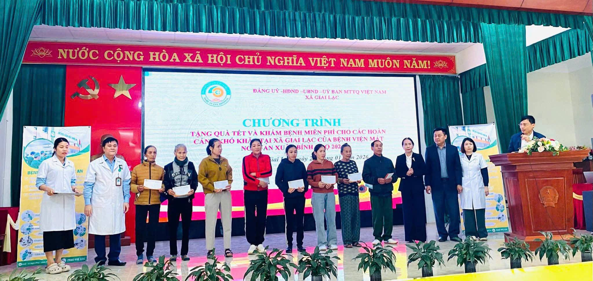 Tiếp nối hoạt động đầy ý nghĩa này, ngày 28/01/2026, đoàn công tác của Bệnh viện Mắt Nghệ An do BS.CKII Phạm Văn Minh – Phó Bí thư Chi bộ, Phó Giám đốc Bệnh viện làm Trưởng đoàn, cùng đội ngũ bác sĩ, điều dưỡng đã tổ chức khám, tư vấn sức khỏe và cấp phát thuốc miễn phí cho người dân tại xã Giai Lạc, tỉnh Nghệ An.