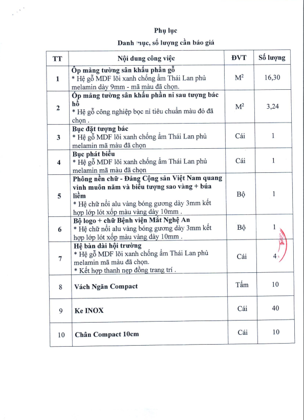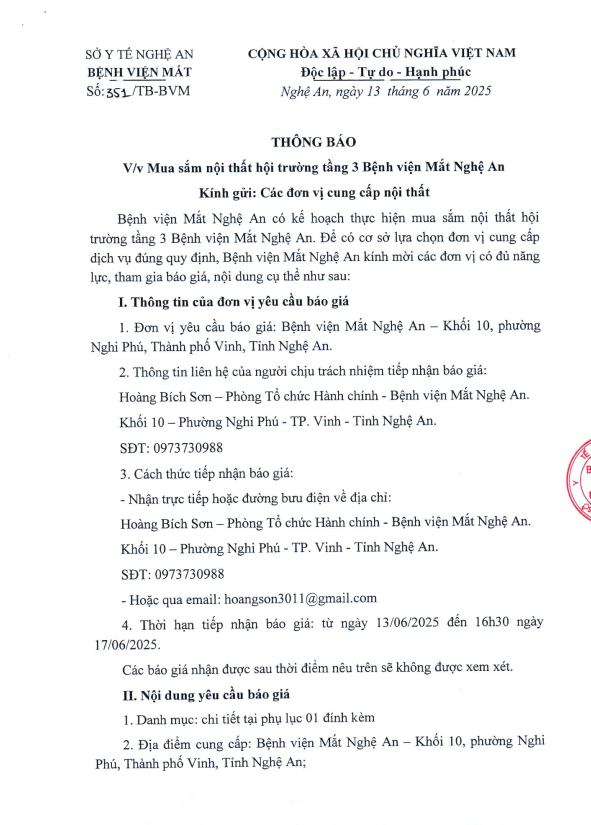 THÔNG BÁO VỀ VIỆC BÁO GIÁ MUA SẮM NỘI THẤT HỘI TRƯỜNG TẦNG 3 BỆNH VIỆN MẮT NGHỆ AN