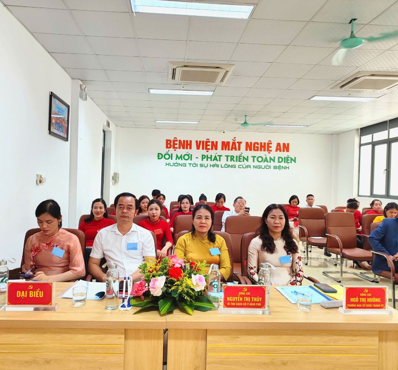 Đại hội vinh dự đón tiếp sự hiện diện của các đồng chí lãnh đạo: TS.BS Lê Thị Hoài Chung – Giám đốc Sở Y tế Nghệ An; đồng chí Ngô Thị Hường – Trưởng Ban Tổ chức Thành ủy Vinh; đồng chí Nguyễn Thị Thủy – Bí thư Đảng ủy phường Nghi Phú; cùng đại diện các Sở, ban, ngành liên quan và toàn thể 35 đảng viên Chi bộ.