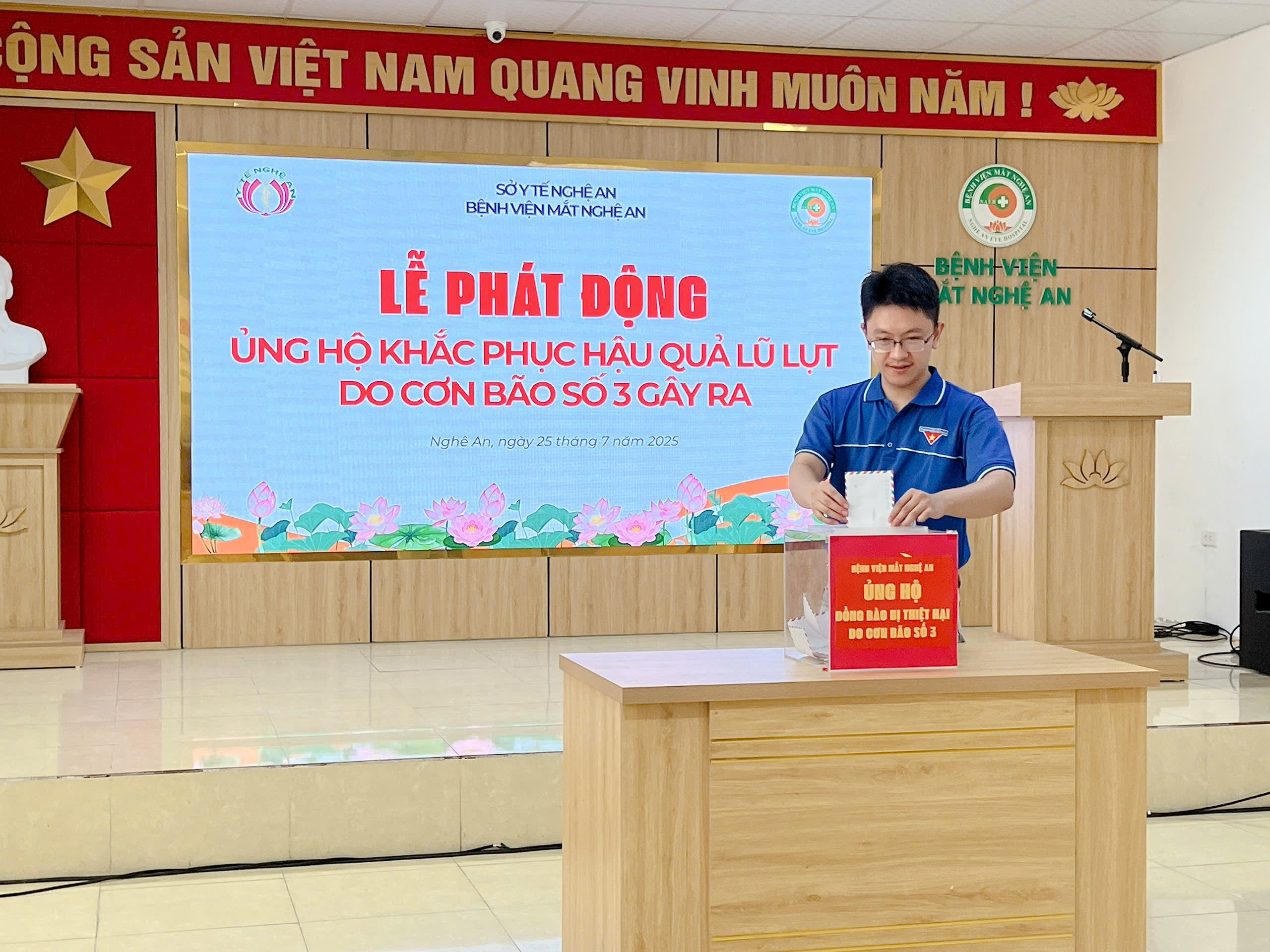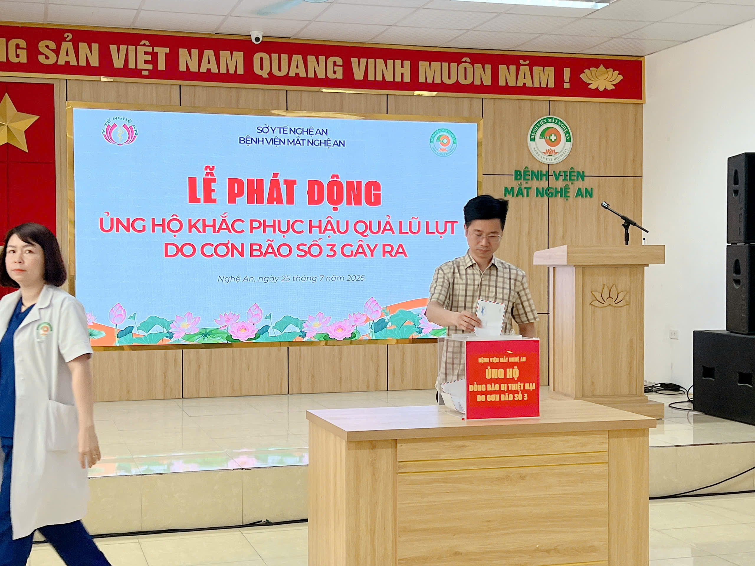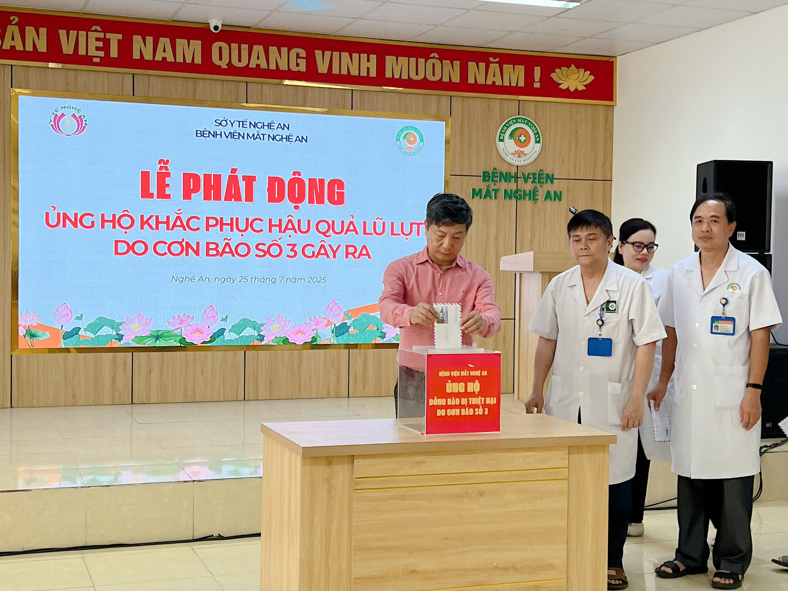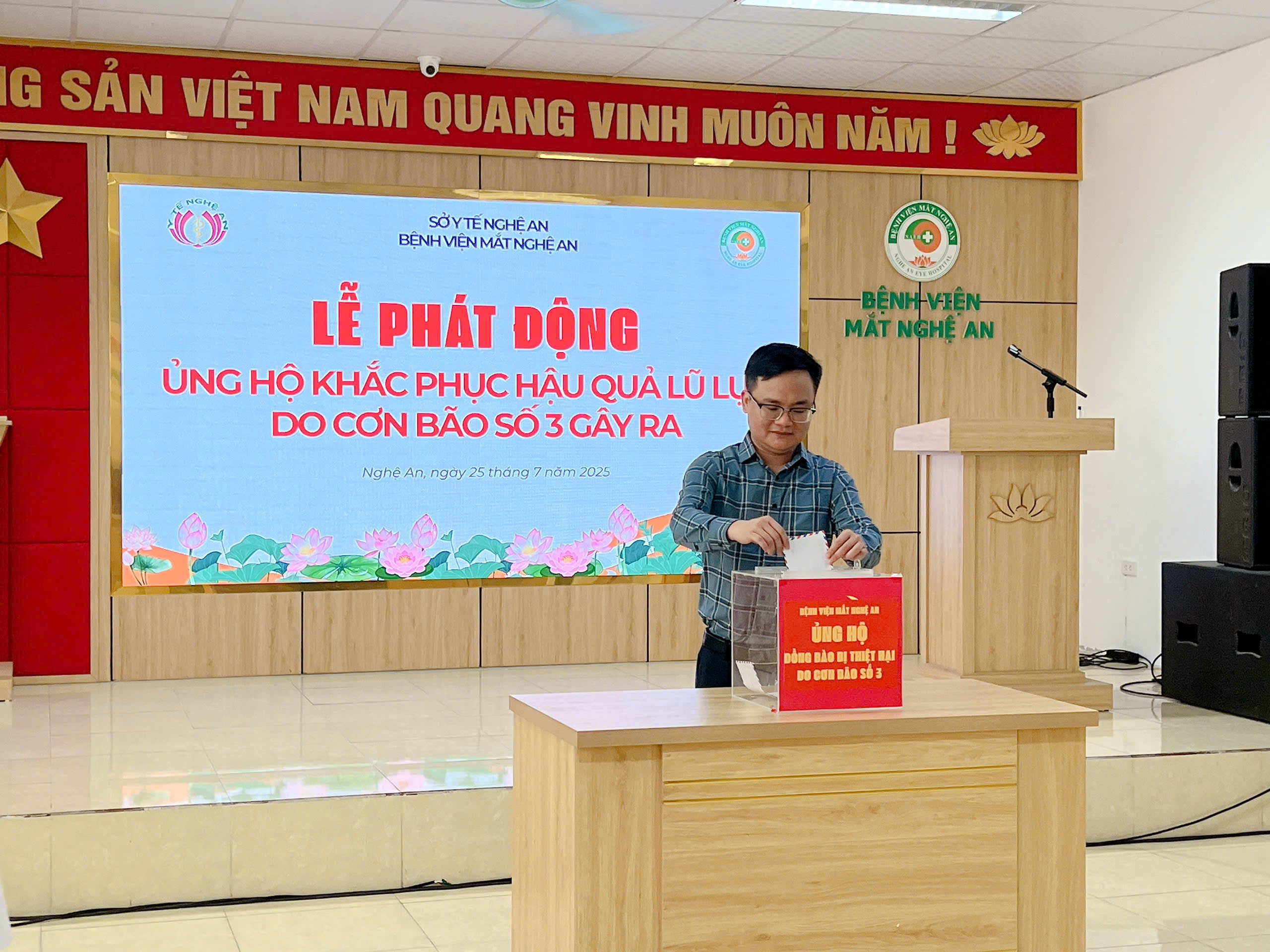 Hưởng ứng lời kêu gọi của Uỷ ban MTTQ Việt Nam Tỉnh Nghệ An ngày 23/7/2025 và Sở Y tế Nghệ An V/v ủng hộ đồng bào bị ảnh hưởng bởi thiên tai do cơn bão số 3 gây ra, phát huy truyền thống “tương thân tương ái“ “lá lành đùm lá rách”.